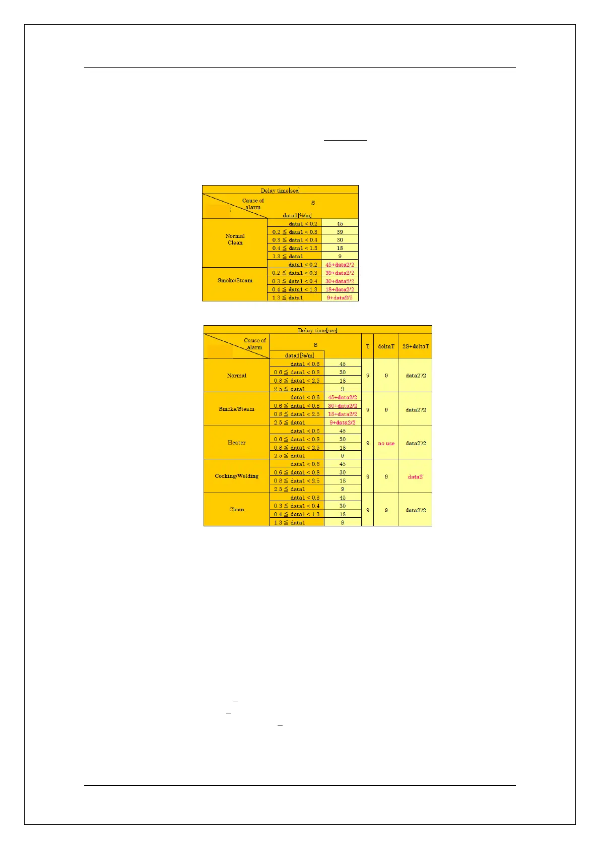 If the cause of alarm is T or deltaT the alarm delay time will be 9 seconds.