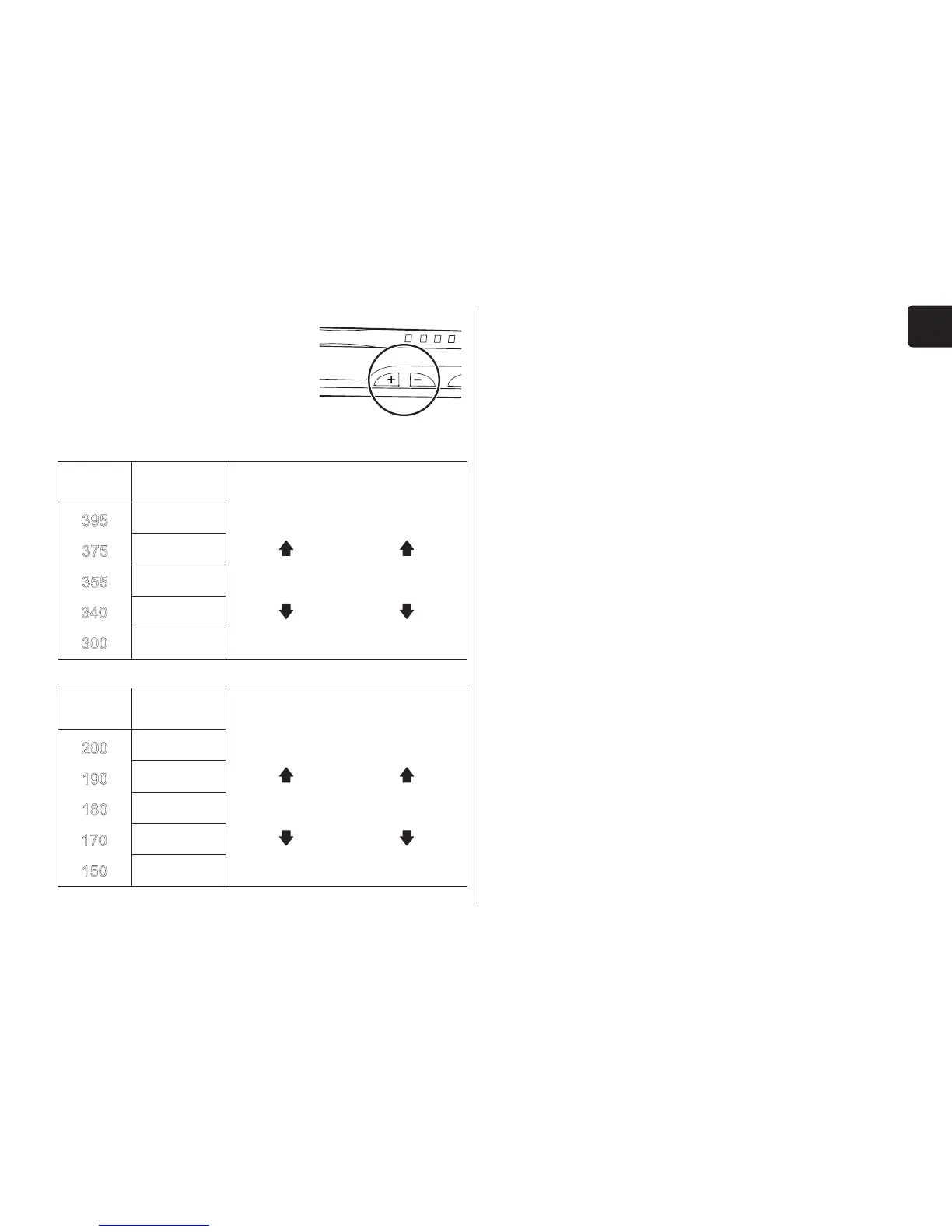 • The temperature is raised using “+” and lowered using “–”