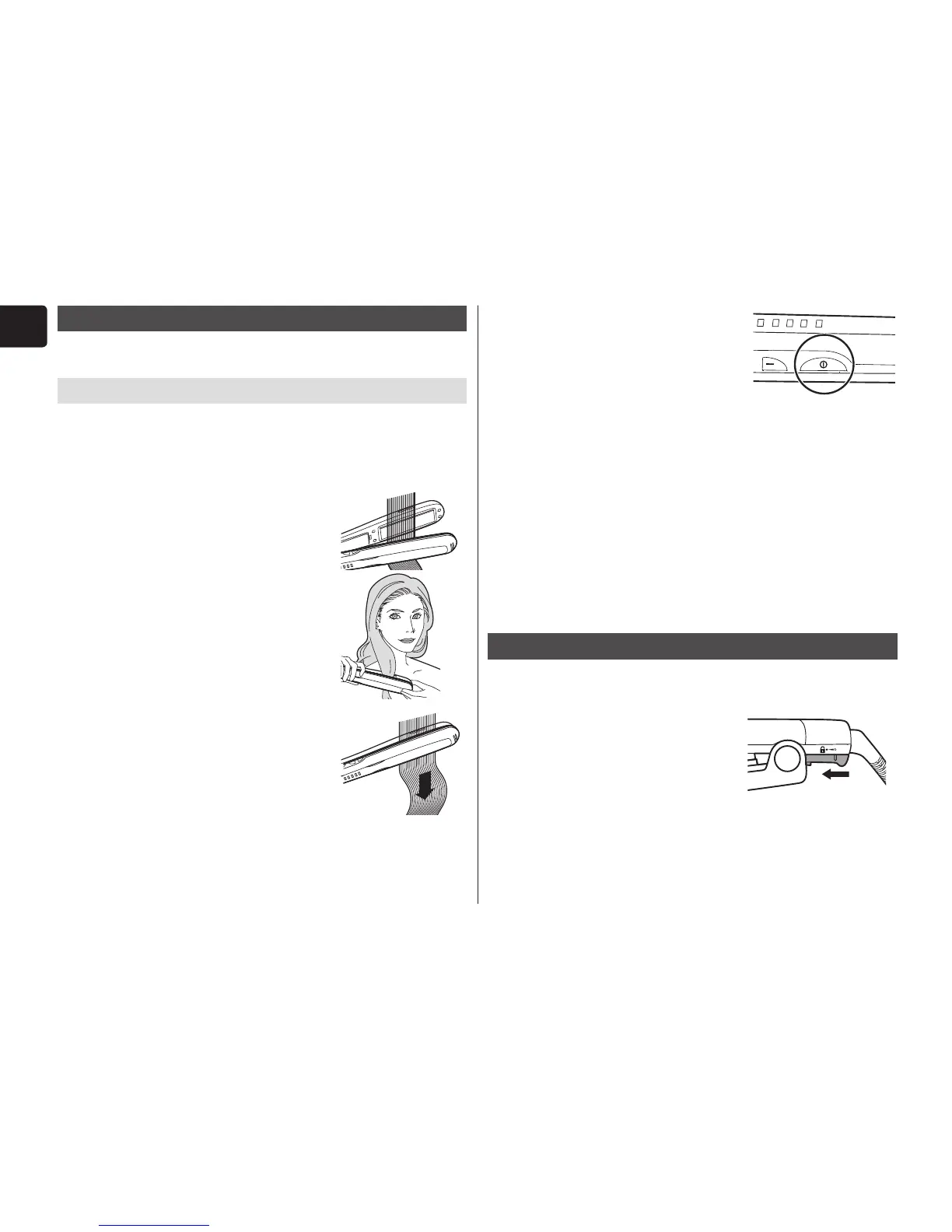 • When hair is clamped, do not hold the straightener in