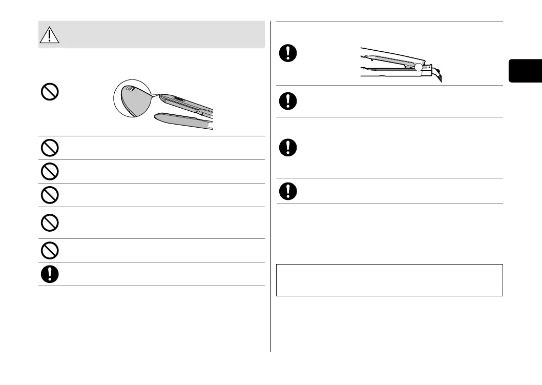 請勿讓加熱區域觸碰到皮膚(耳朵、額頭、領口等)。請勿讓加熱區域觸碰到皮膚(耳朵、額頭、領口等)。