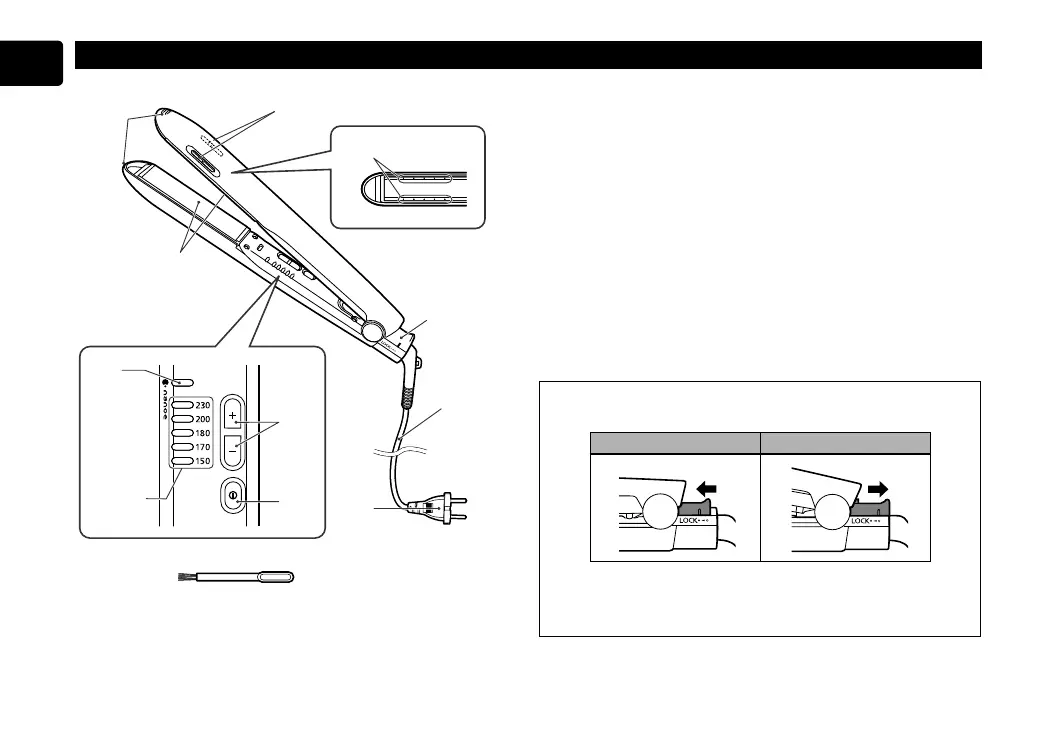 Slide the Open/Close lock (shaded area) to lock and unlock.