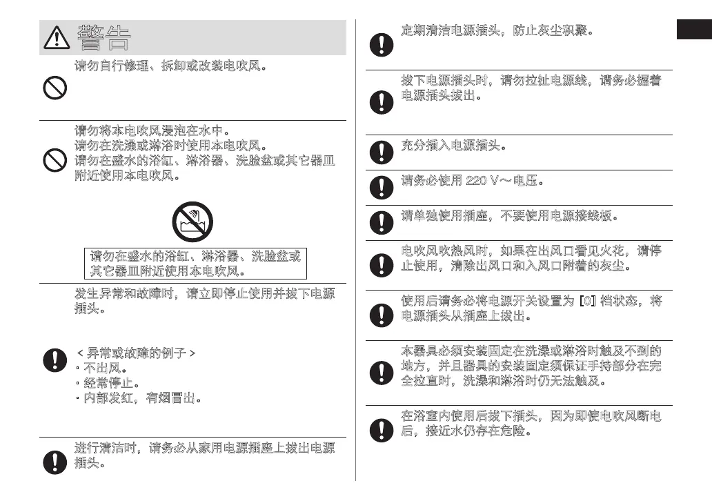 请勿在洗澡或淋浴时使用本电吹风。