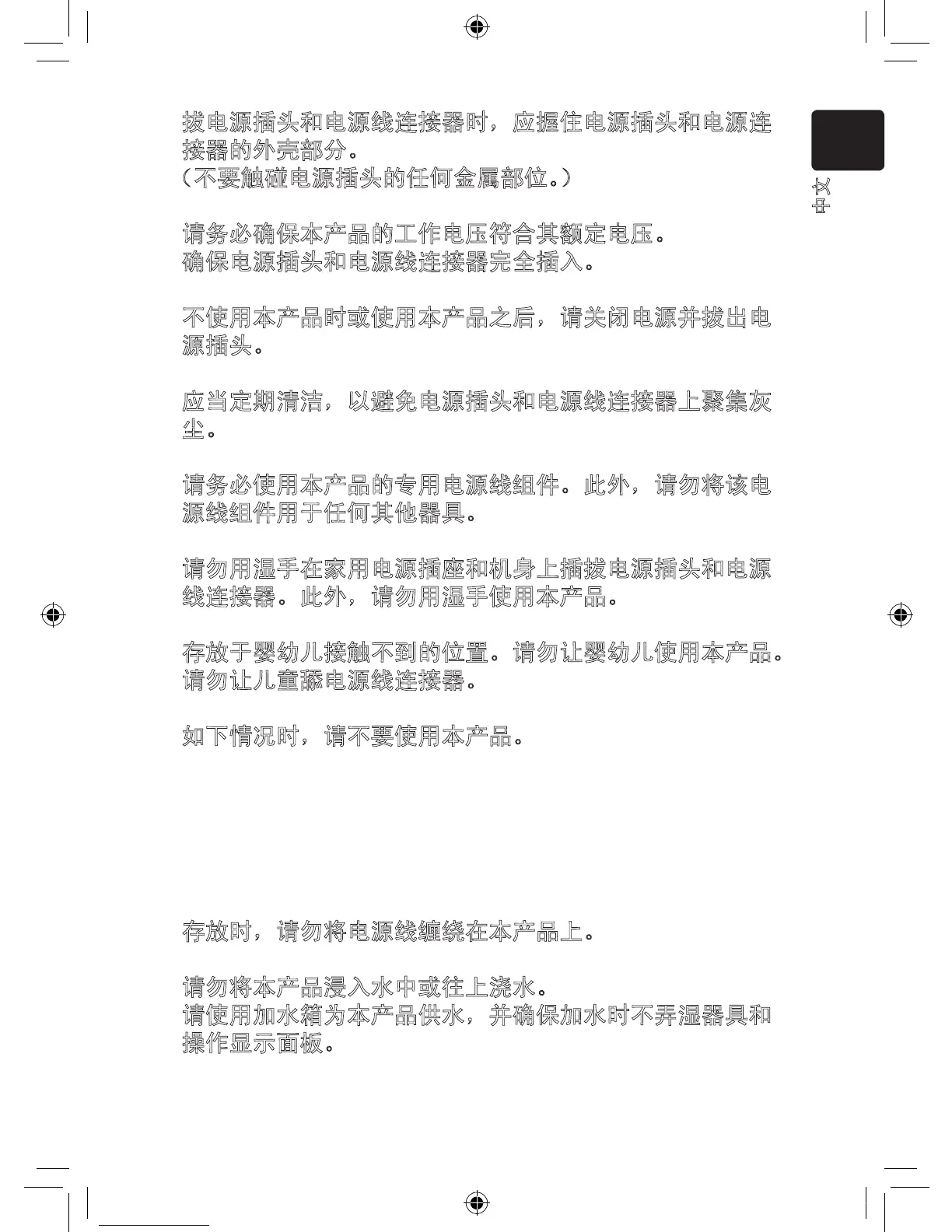 请勿用湿手在家用电源插座和机身上插拔电源插头和电源