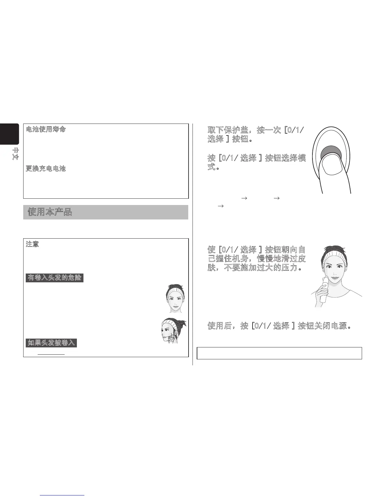 定,以免头发卷入滚轮。此外,即使头发