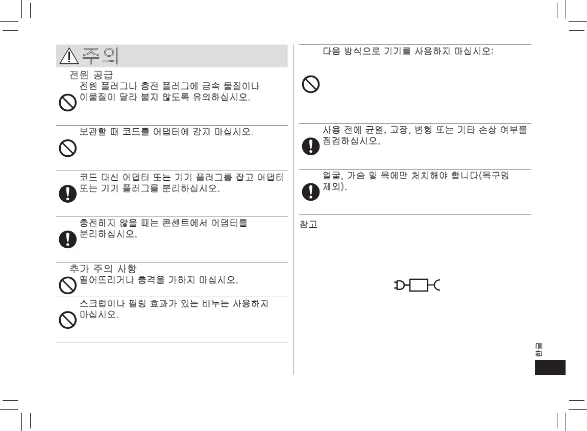 -이렇게 하지 않으면 감전이나 부상을 초래할 수