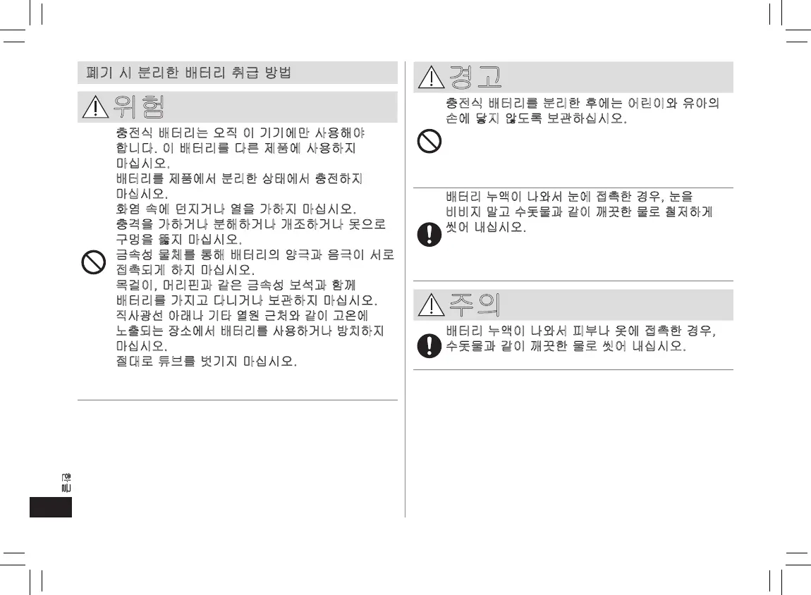 • 충전식 배터리는 오직 이 기기에만 사용해야