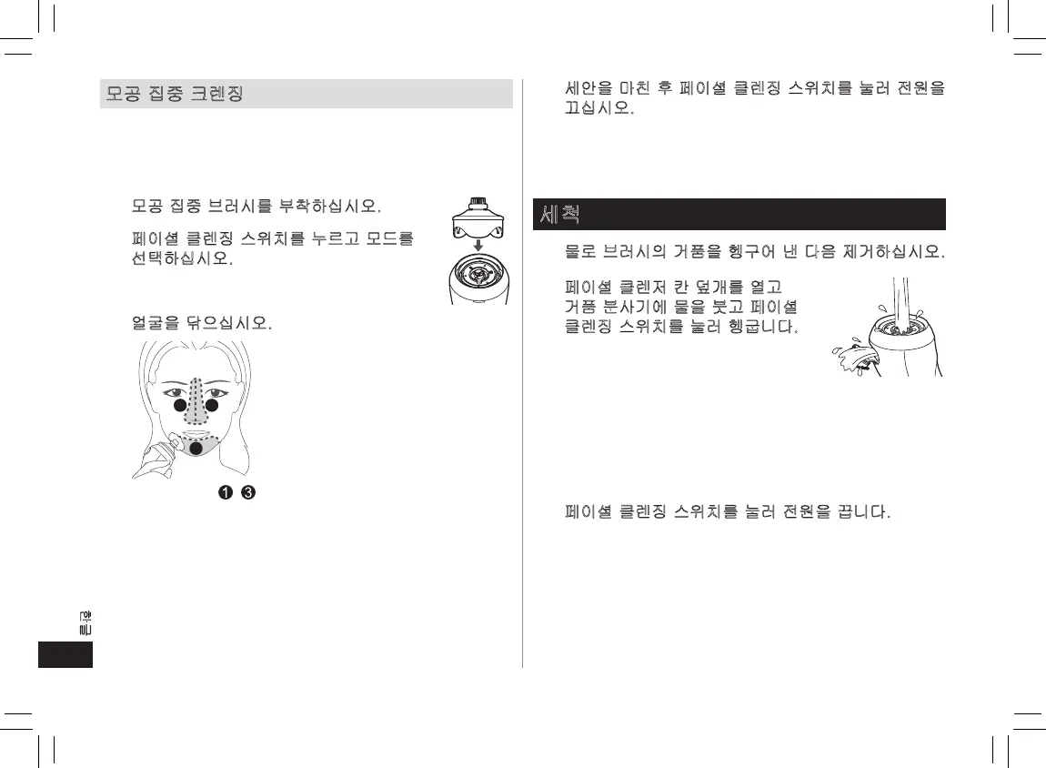 세안을 마친 후 페이셜 클렌징 스위치를 눌러 전원을