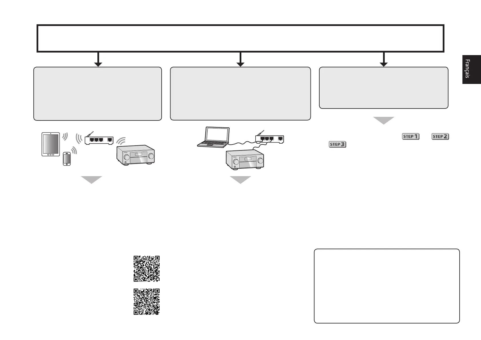 Procédez à la connexion et aux réglages initiaux selon l’une des méthodes énumérées ci-dessous.