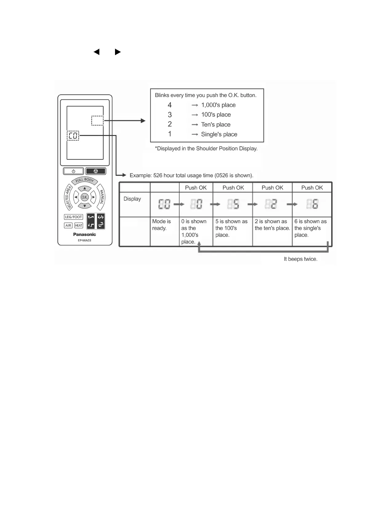 3. Push the OK button again, then 1,000's place, 100's place, ten's place, and single's place are shown every time you push the
