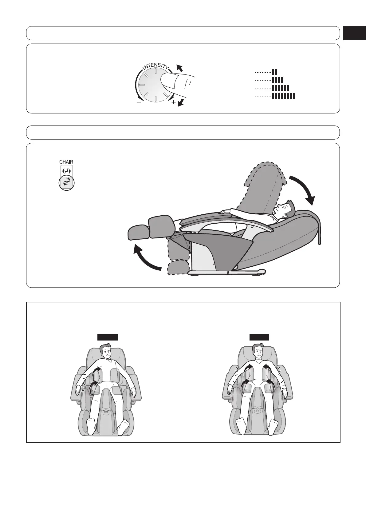 See pages 32 to 33 for description on how to adjust the reclining angle, the legrest, and the pillow.•