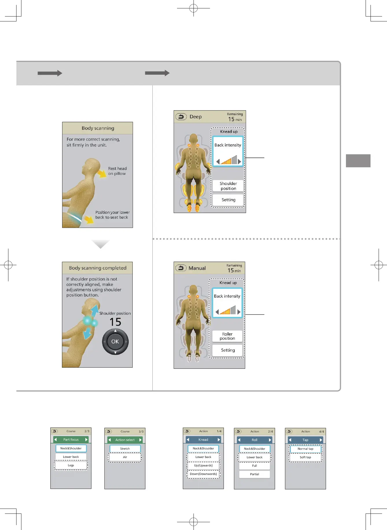 Menu Course & action selection Body scanning Start the massage and adjust to suit your desire