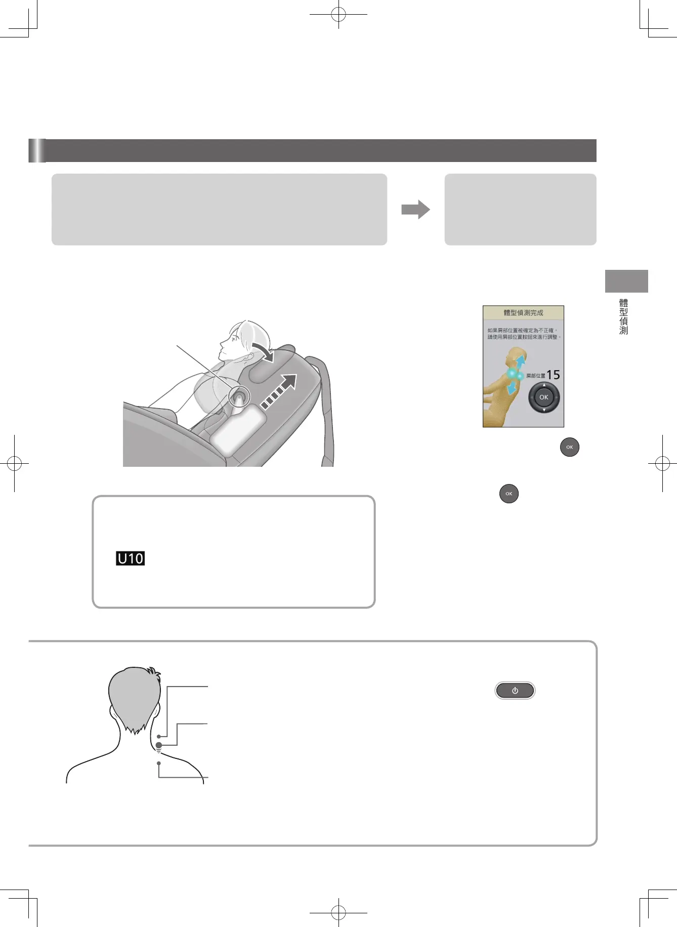 請勿將頭部移離頭枕,直至確定肩部位置為止。