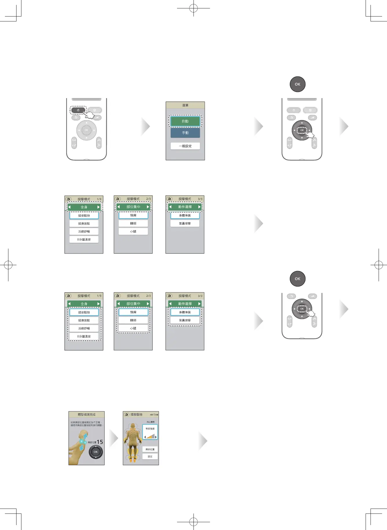 按摩開始後, 將在最長約 15 分鐘內自動結束。