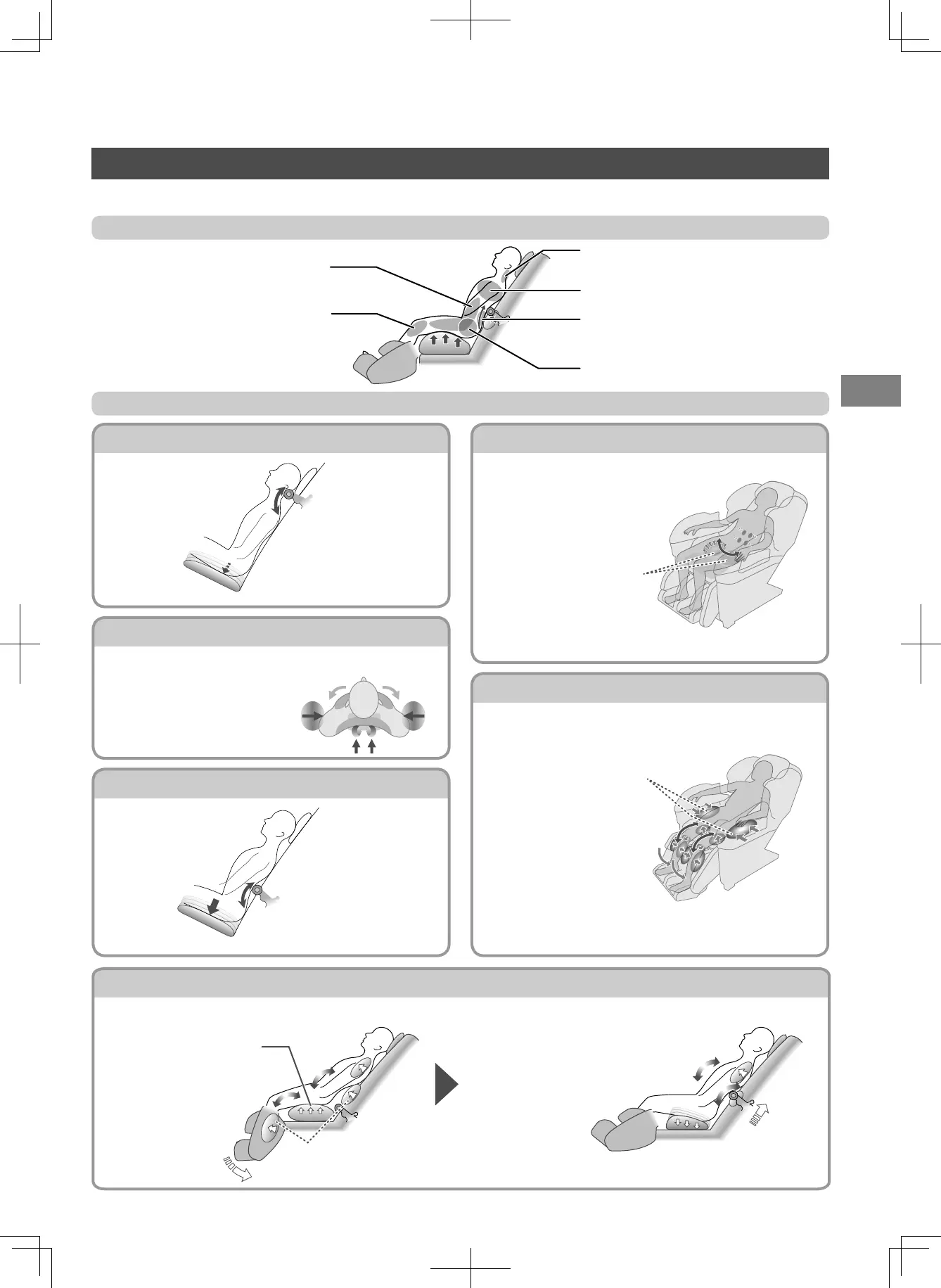Air massage is that of softly relaxing the body with air bags only air. (The massage rollers of the upper half of the body do not move)