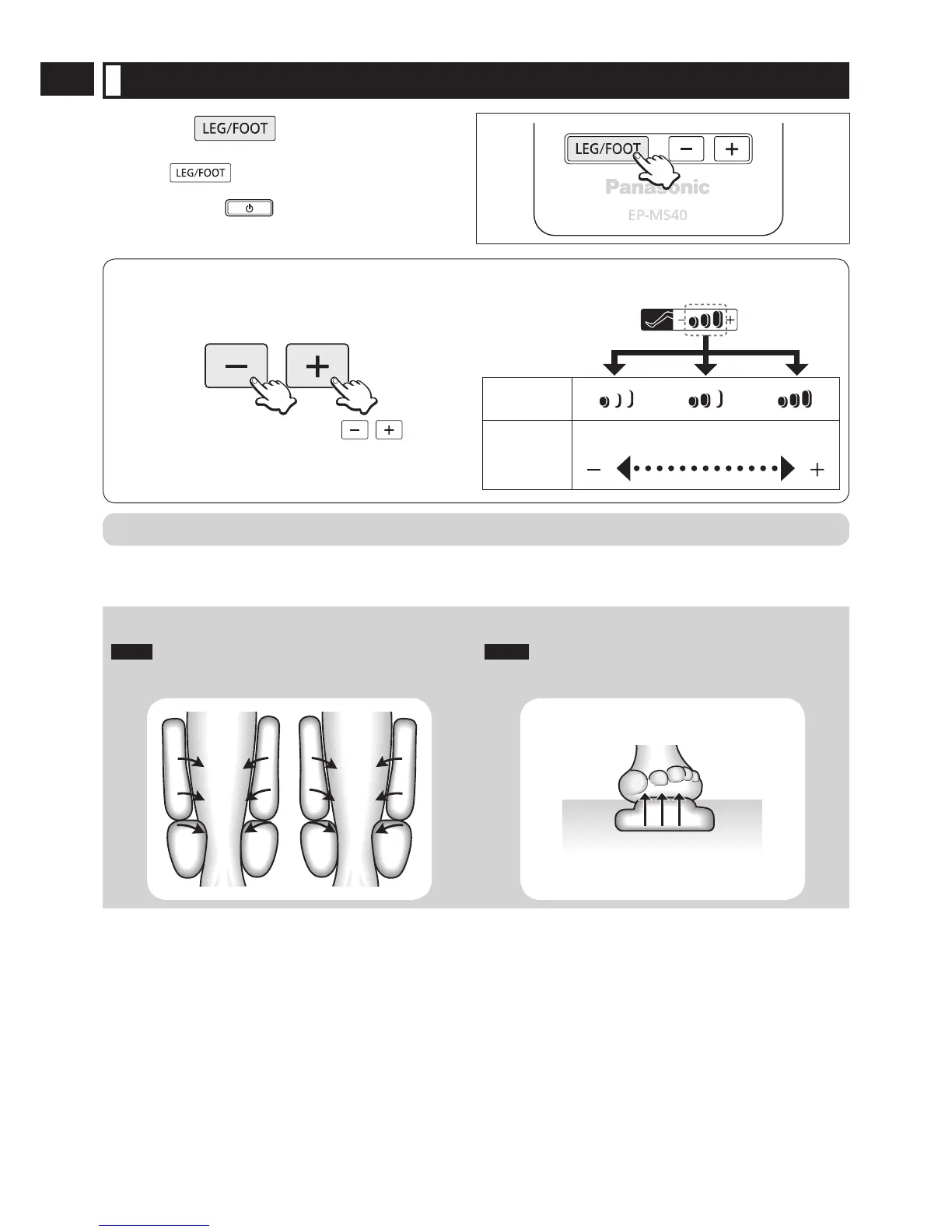 Press the leg/foot massage buttons to adjust