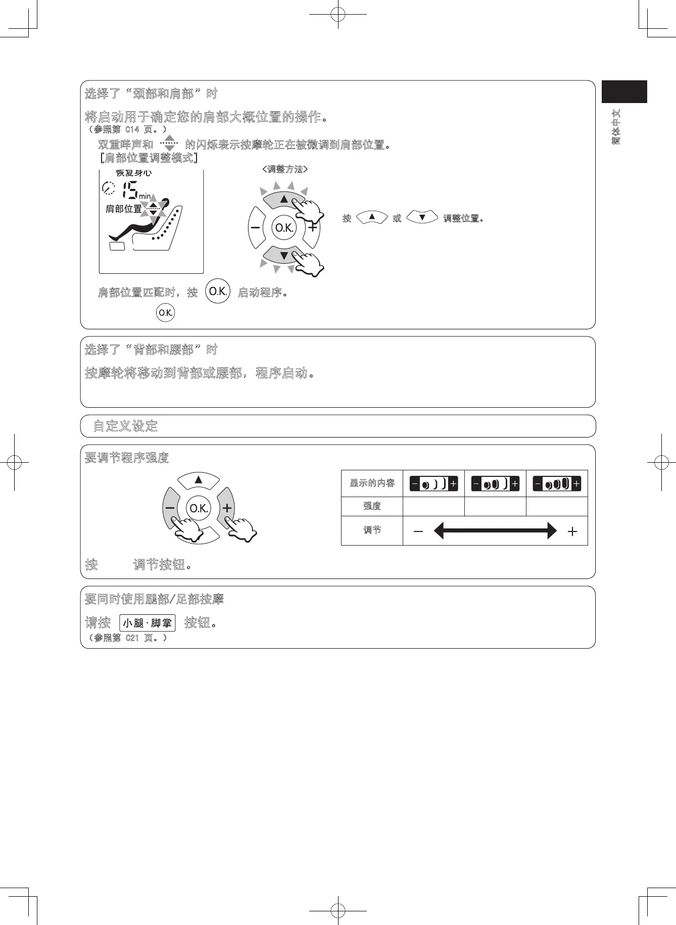 1 双重哔声和 的闪烁表示按摩轮正在被微调到肩部位置。