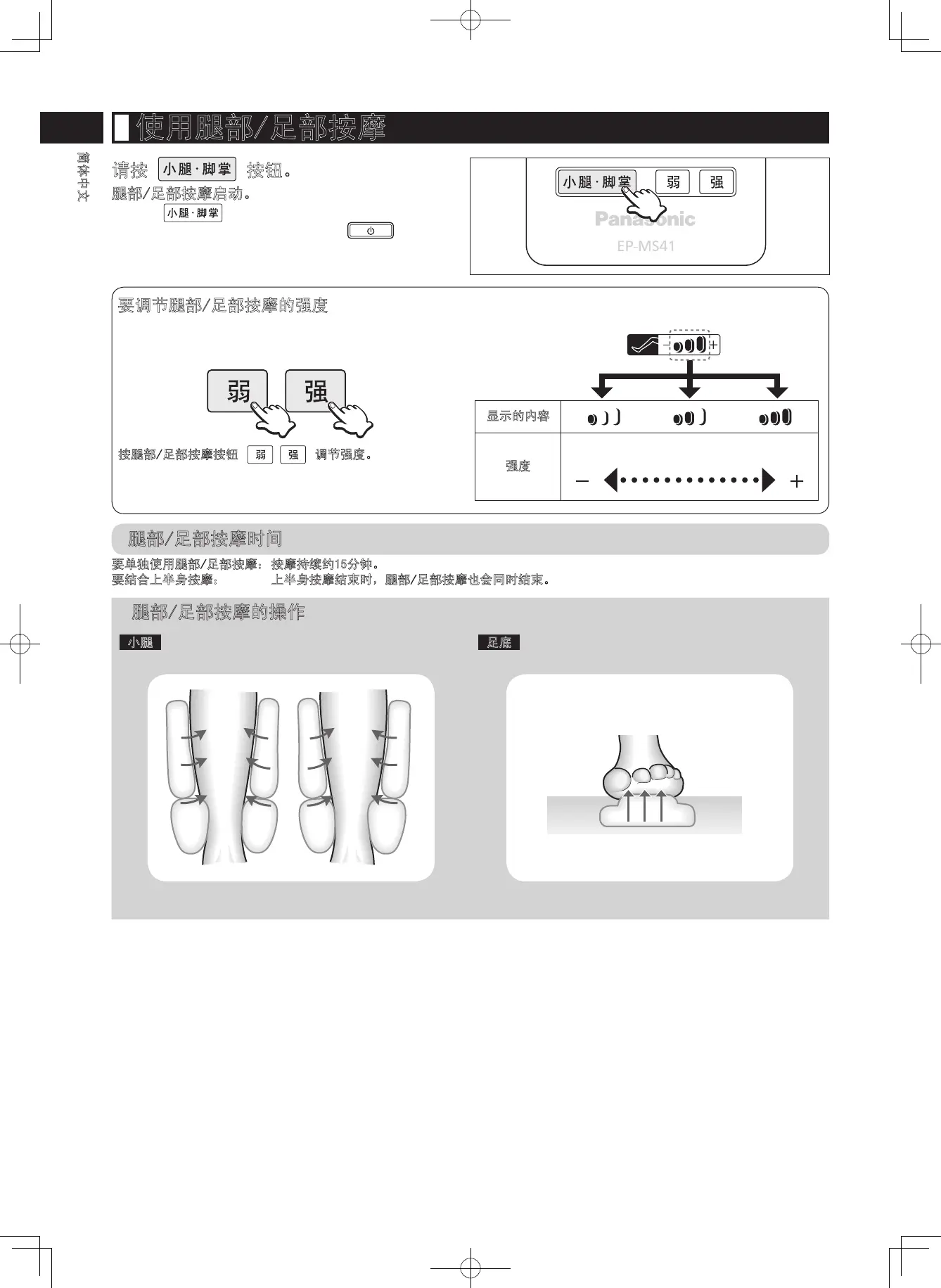 要单独使用腿部/足部按摩:按摩持续约15分钟。
