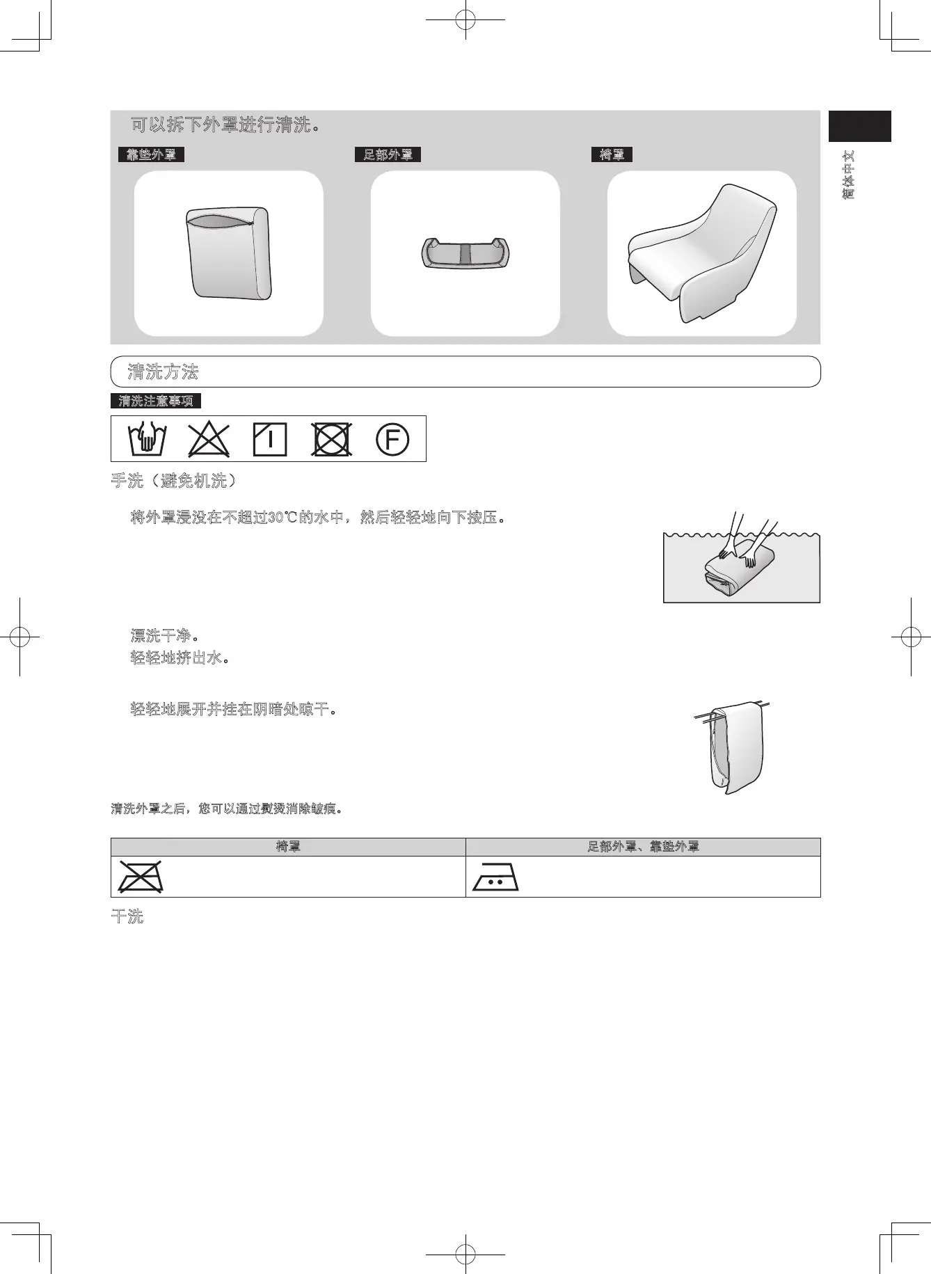 清洗外罩之后,您可以通过熨烫消除皱痕。