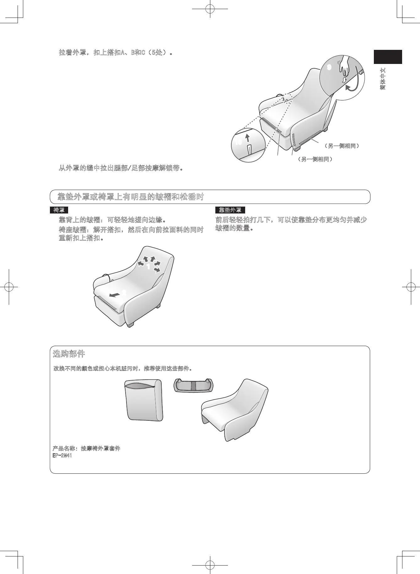 如果折痕比较明显,可熨平外罩。(参照第C24页。)