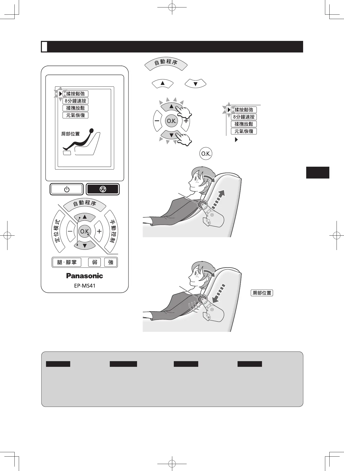 選擇“揉按鬆弛”、“8分鐘速按”、“揉撫放鬆”和“元氣恢復”之一。