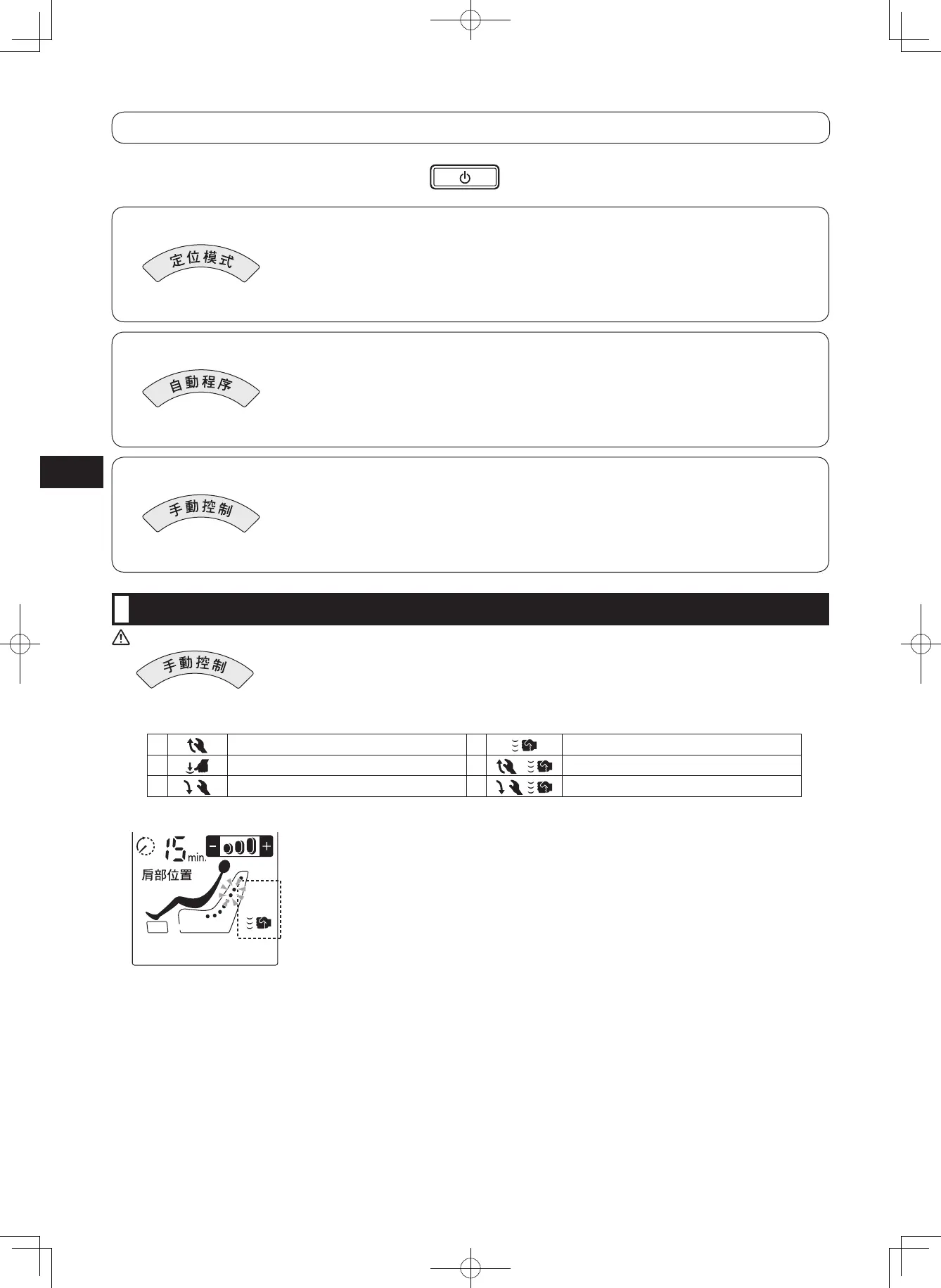 如果您誤設了較短的時間,可結束按摩,然後再重新按 按鈕輸入新設定。