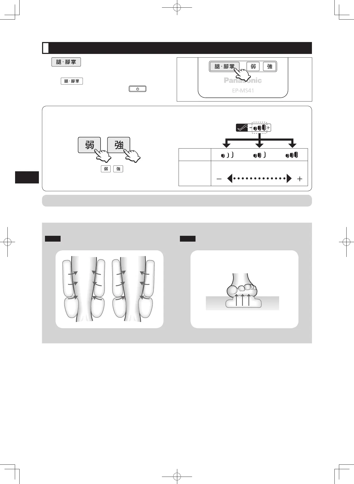按腿.腳掌強度調節按鈕 調節強度。