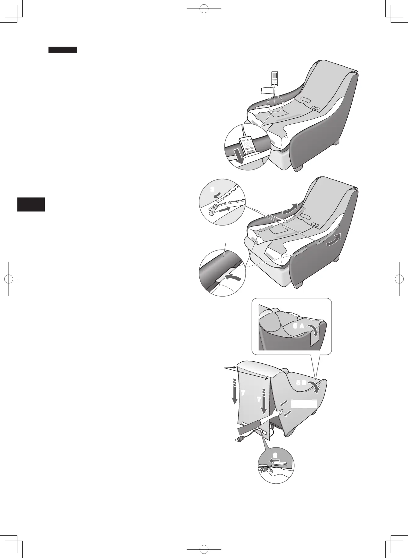 5 拉伸操作器袋至扶手A的外側,並將外罩鋪