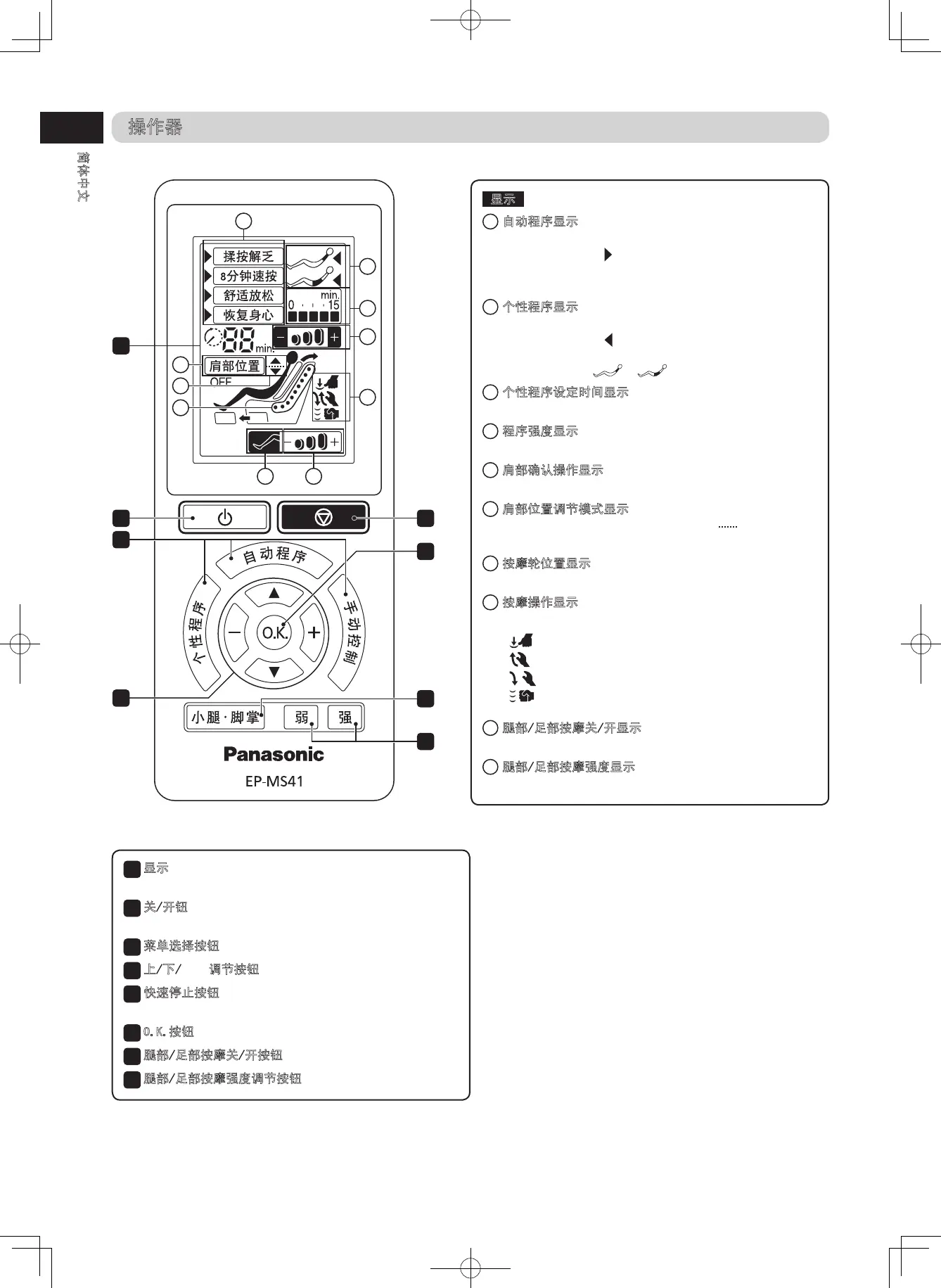 腿部/足部按摩强度调节按钮