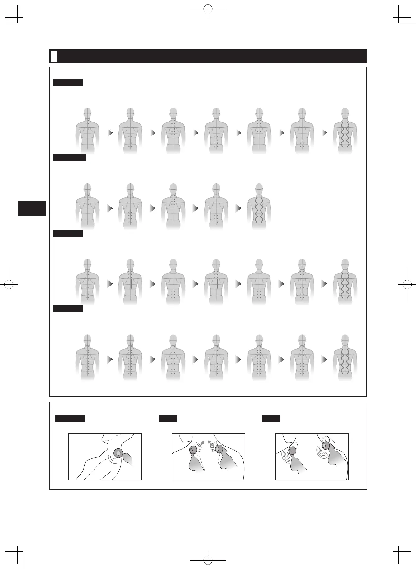 左右輪流輕柔推壓動作。 深度揉按動作。 右左輪流敲打動作。