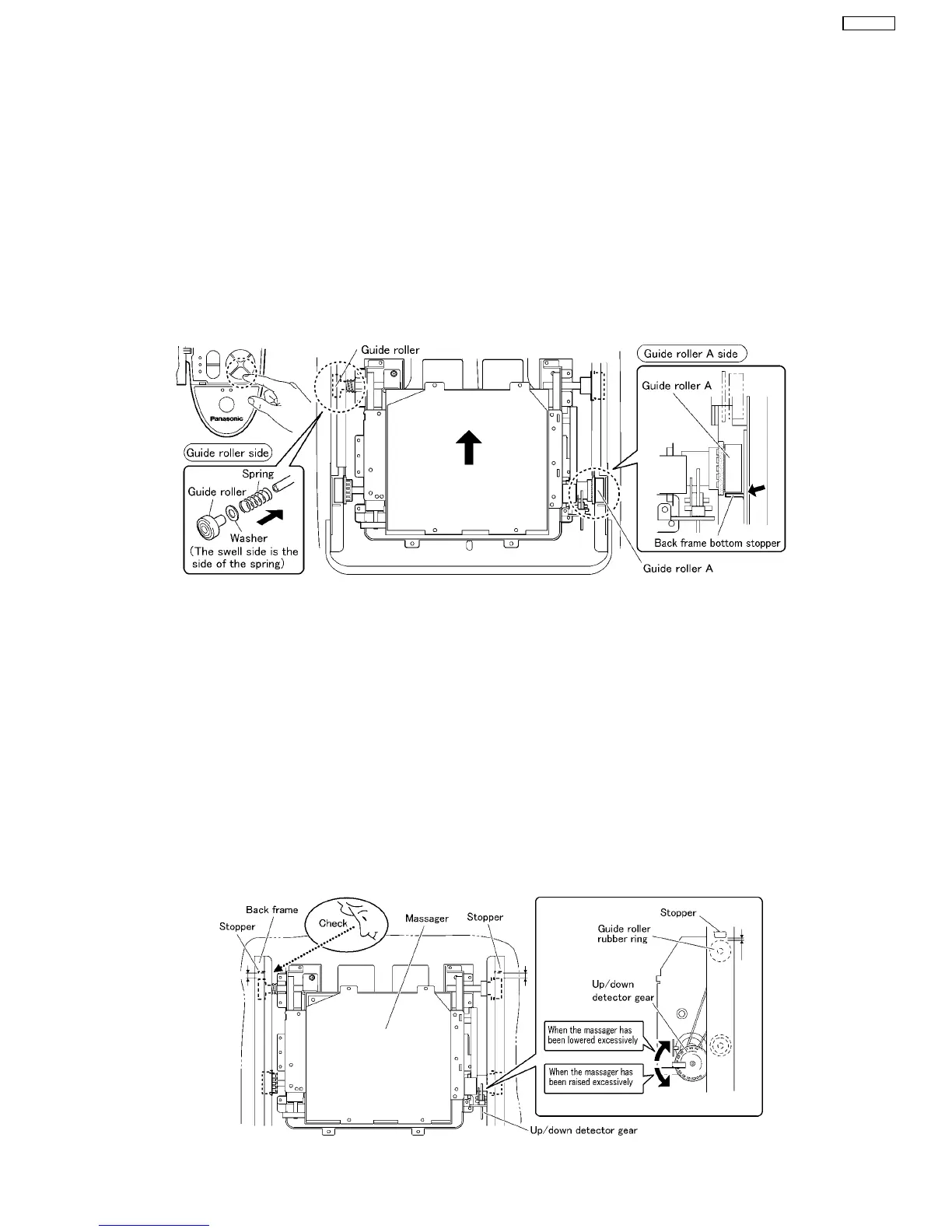 When the massager has been lowered excessively : Turn the up/down detection gear clockwise to adjust.