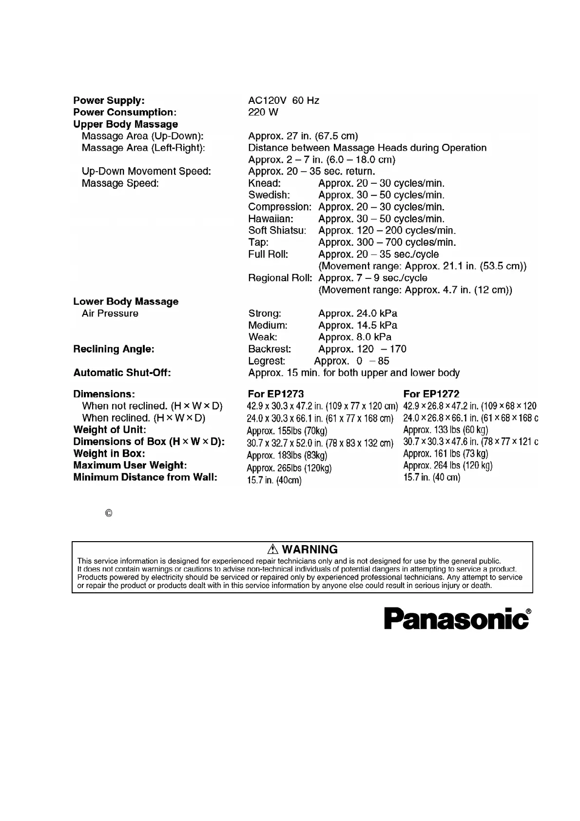 Panasonic EP1273-U1 - Page 2