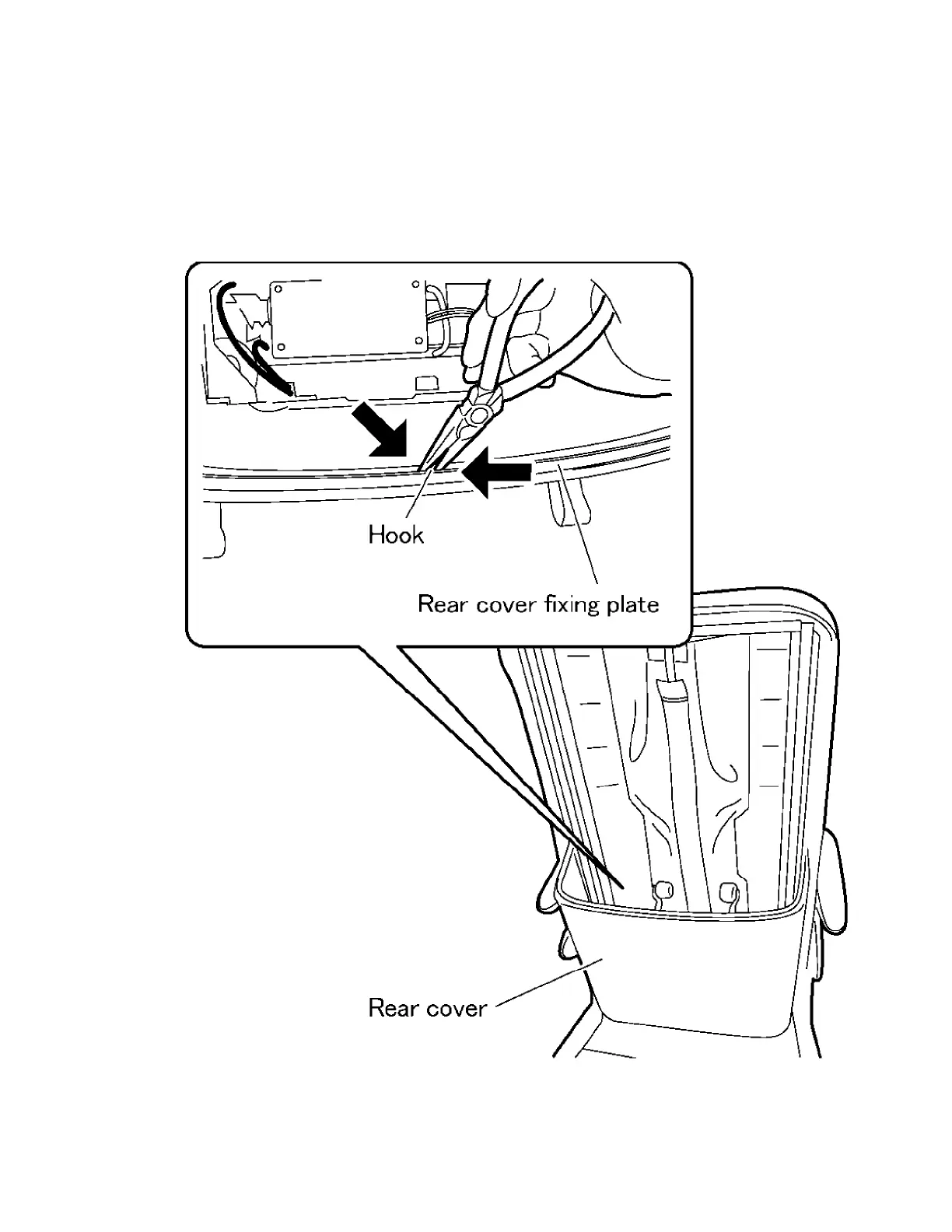 2. Take off the hook with nippers, which fixes the Rear cover bottom and the Rear