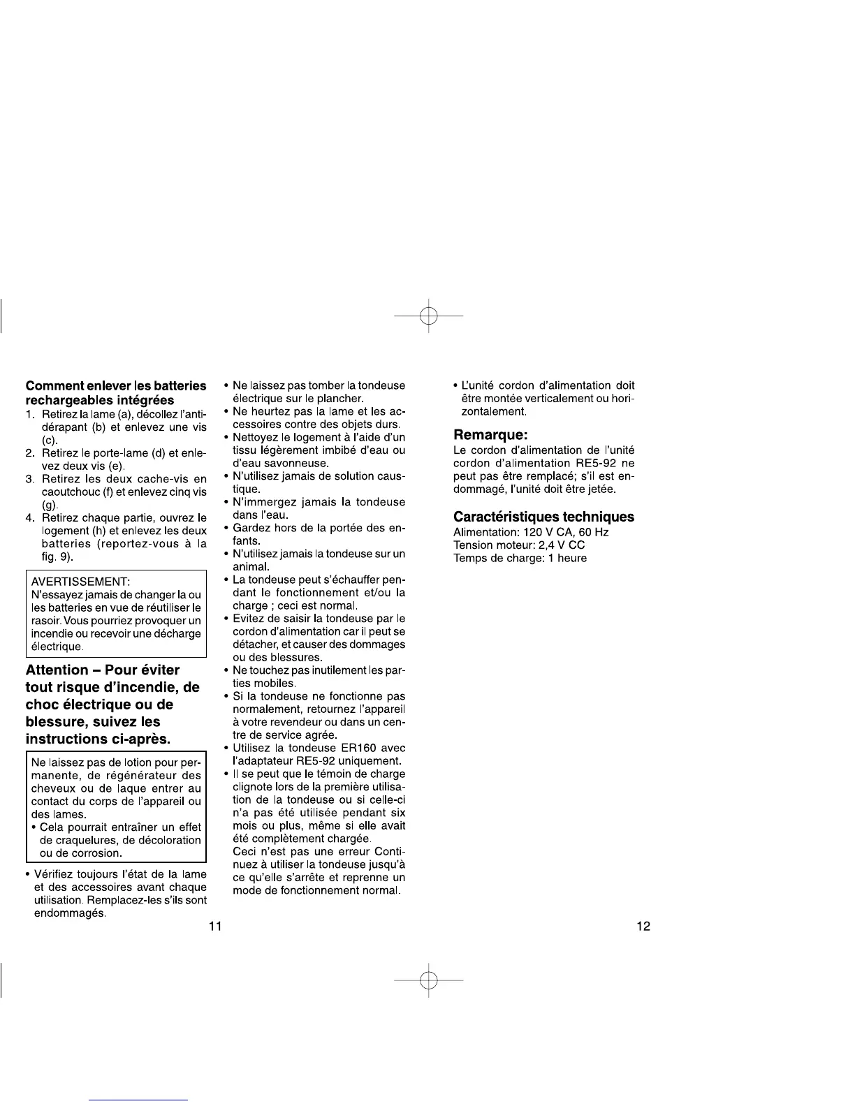 Panasonic ER-160 - Battery Removal and Safety; How to Remove Built-in Batteries; Safety Warnings for Use and Maintenance
