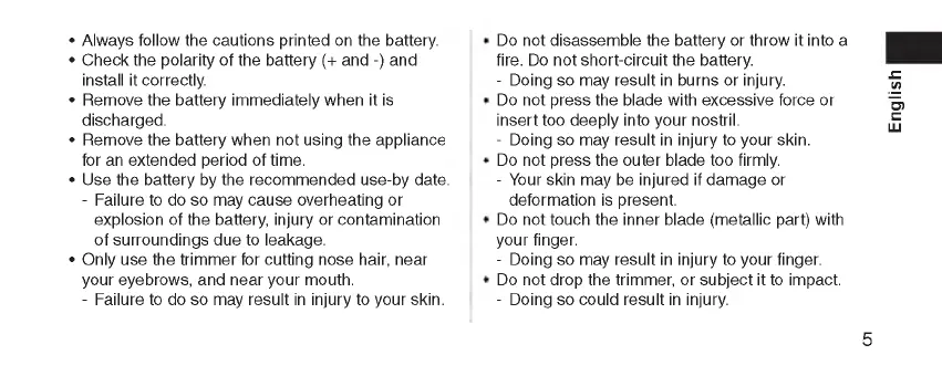• O nly use the trim m er for cutting nose hair, near
