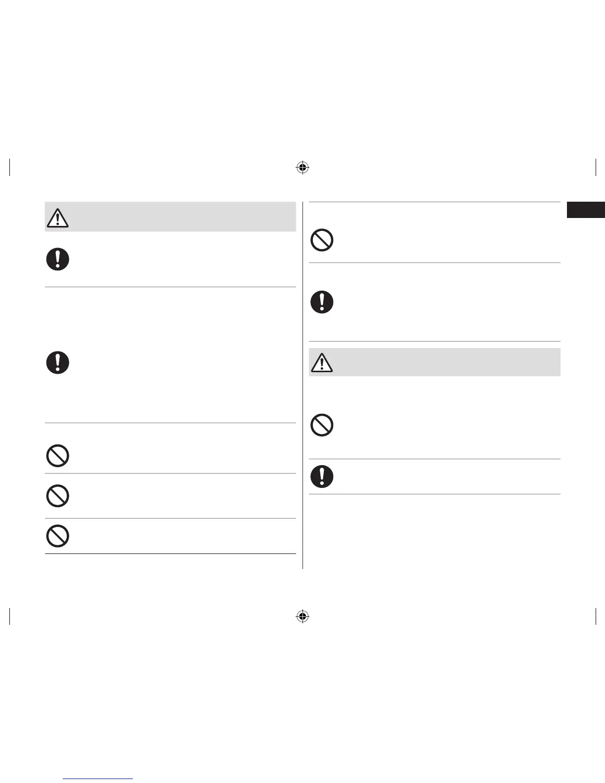 - Doing so may cause fire, electric shock, or injury.