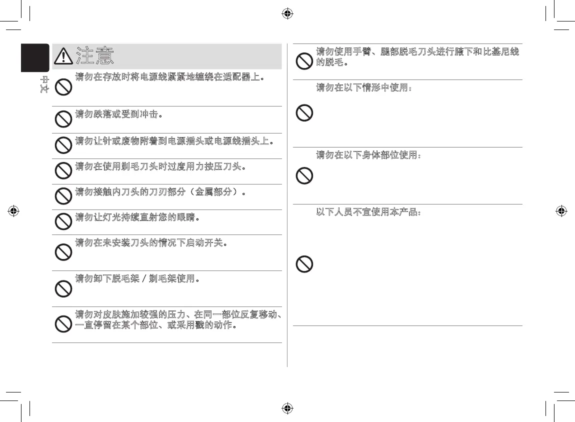 请勿使用手臂、腿部脱毛刀头进行腋下和比基尼线