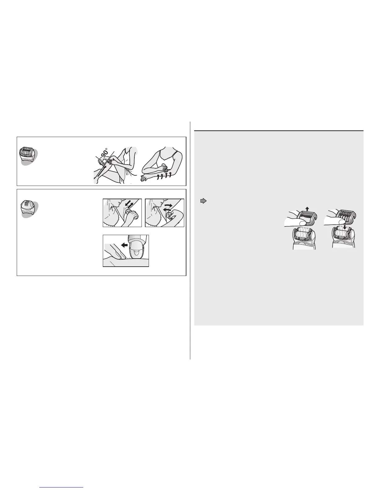 • Apply the epilator at 90° to your skin and move it slowly so that
