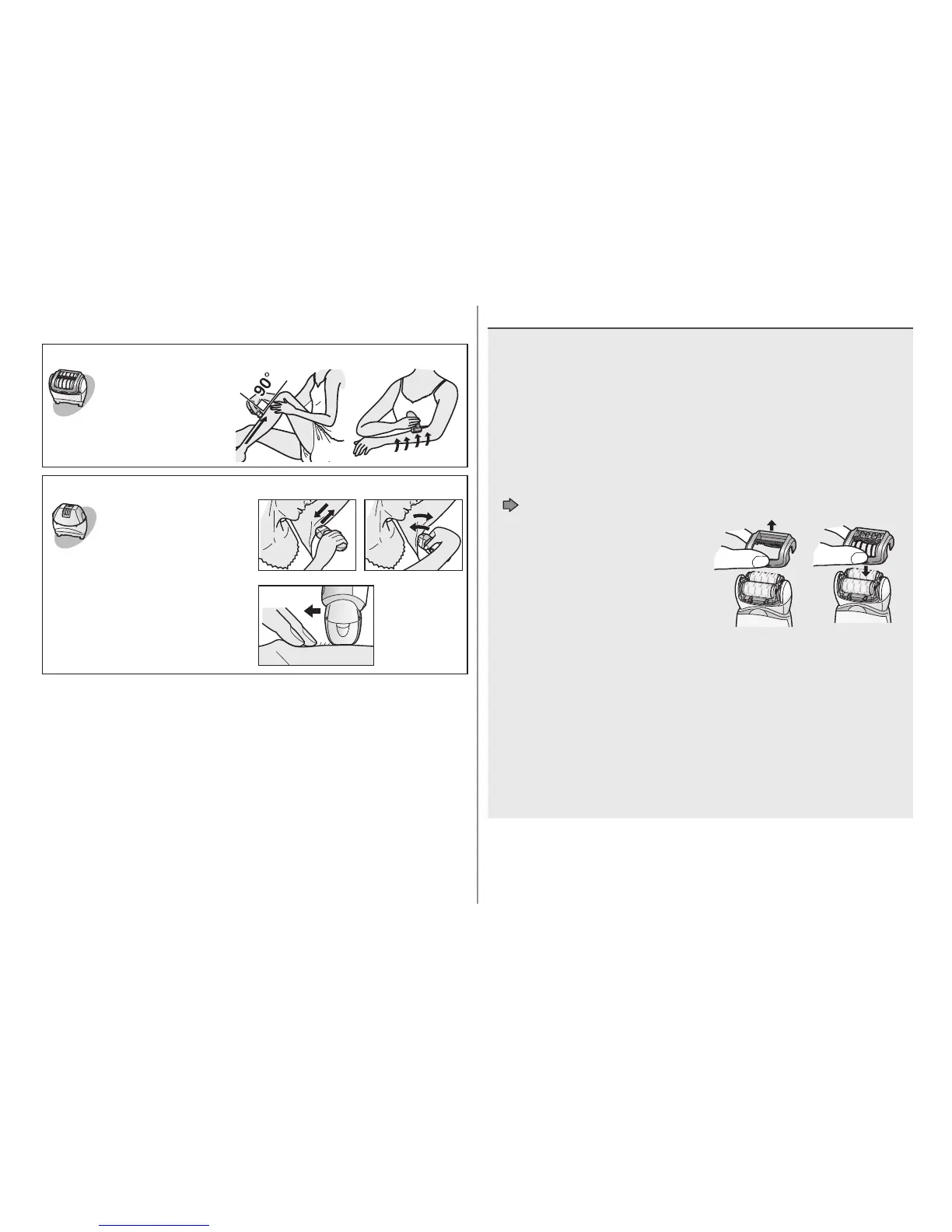 Sett epilatoren mot huden i 90° vinkel, og beveg den sakte slik at den