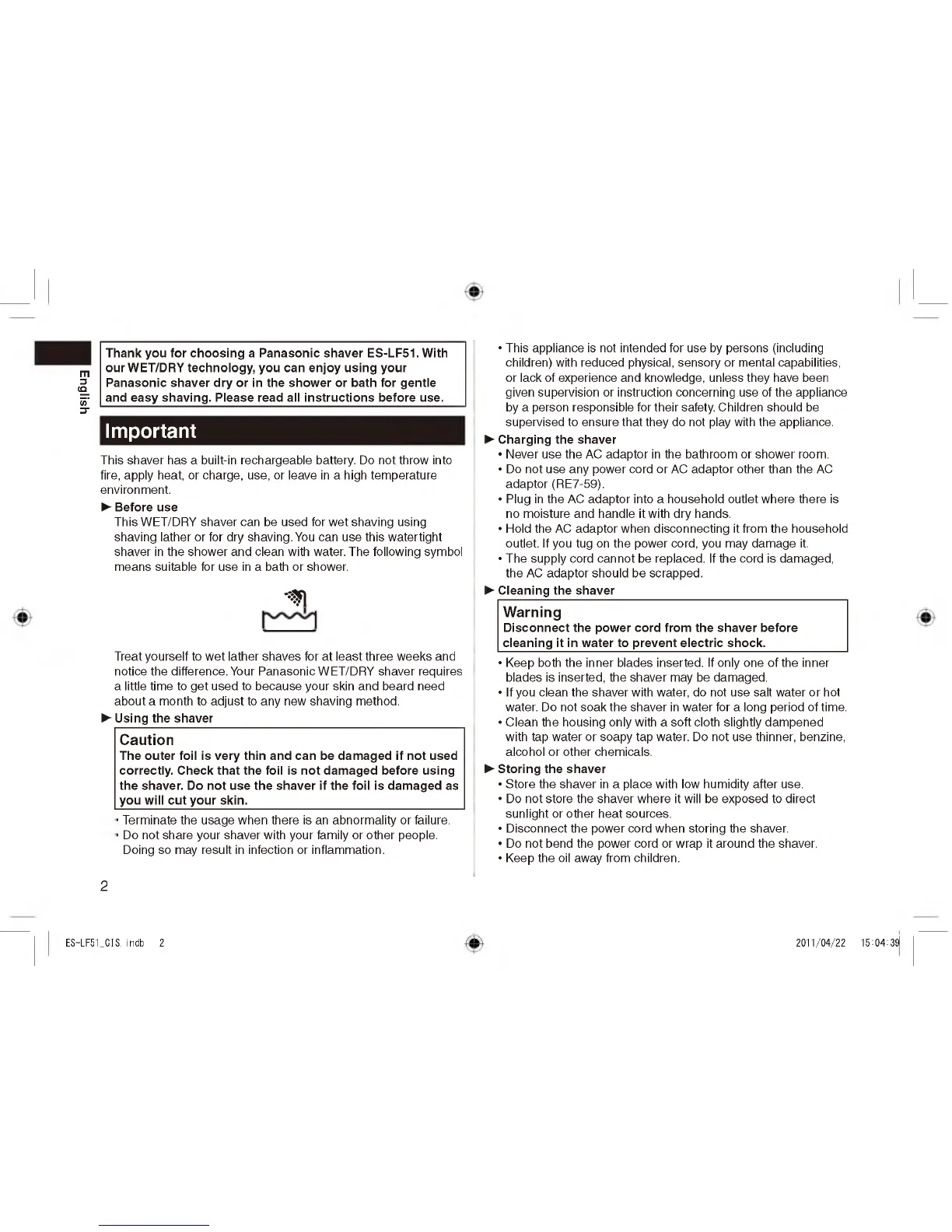 Thank you for choo sing a P anasonic shaver ES-LF51. With