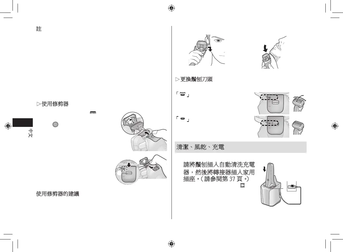 為避免錯誤操作,使用鬚刨時,請將手指放在適當的手