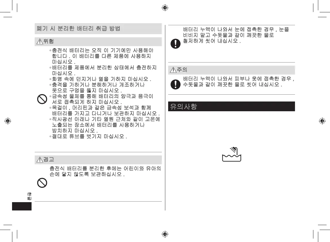 배터리 누액이 나와서 눈에 접촉한 경우 , 눈을
