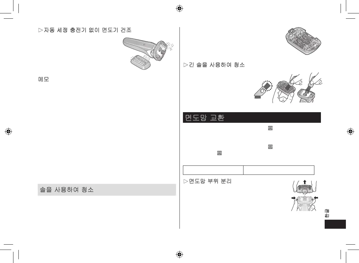 • 면도기에 물방울이나 비누가 남은 상태에서 자동 세정