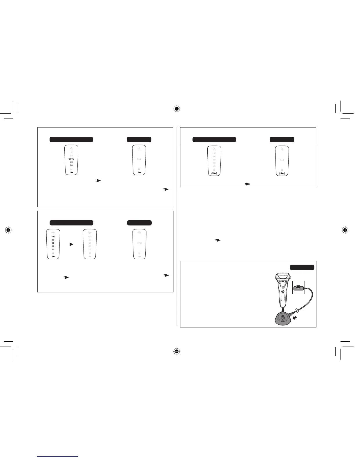 zaświeci się, jeśli maszynka pozostanie podłączona do zasilacza.