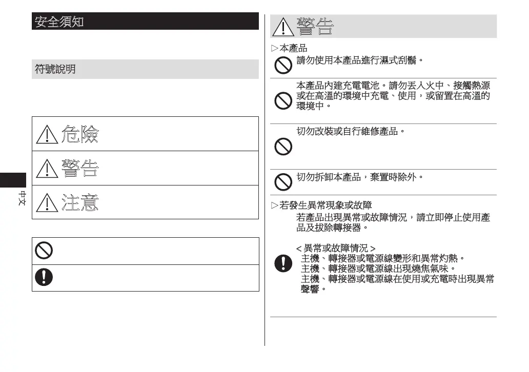 出解釋。若不理會此等符號,不當使用本產品就可能會