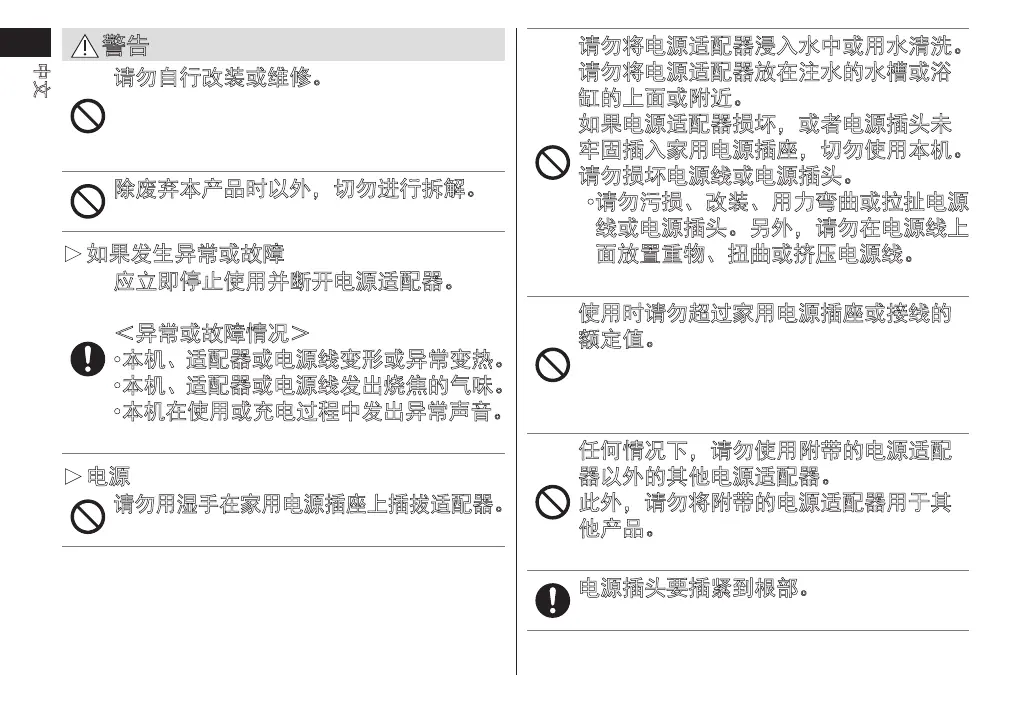 此外,请勿将附带的电源适配器用于其