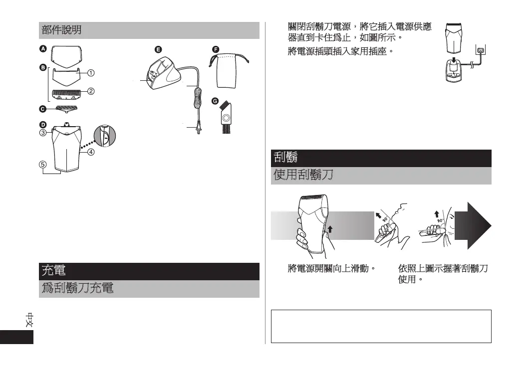 若感覺刮鬍刀速度下降,請依下列方式進行刮鬍刀充電。