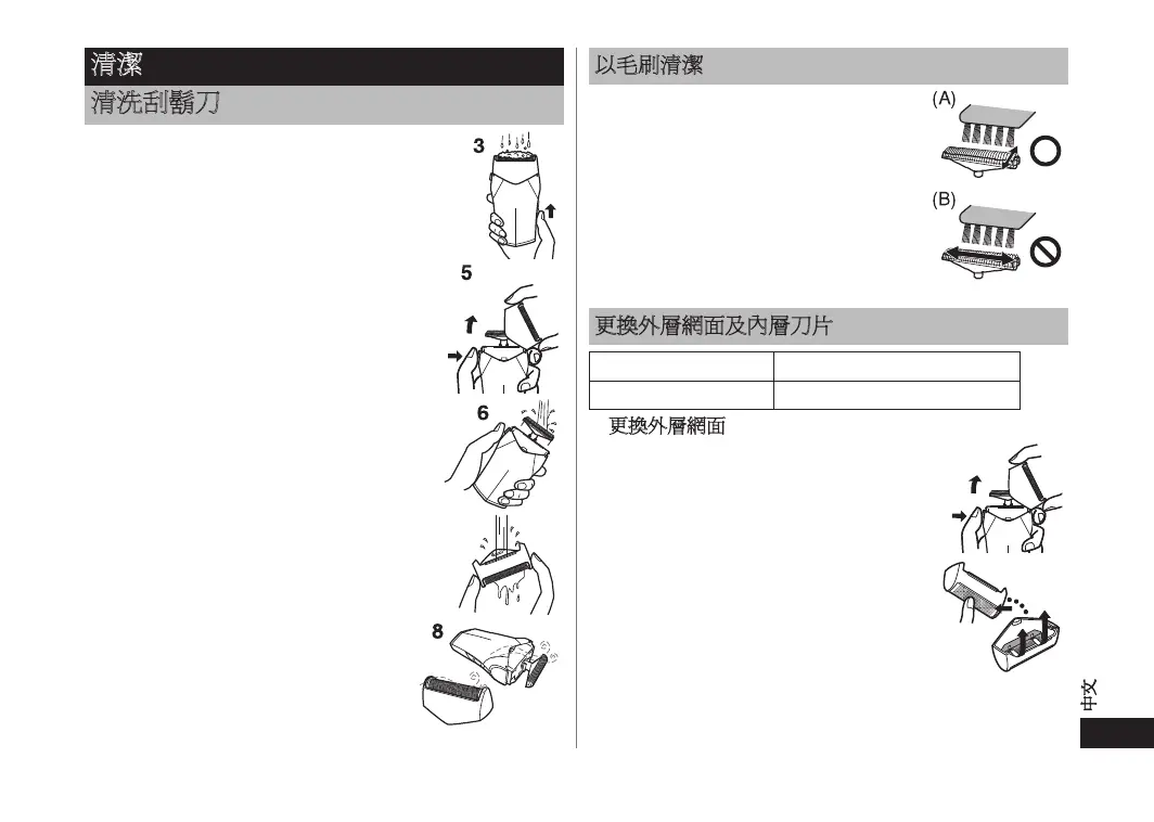利用長刷來清潔外層網面和刮鬍刀機身。