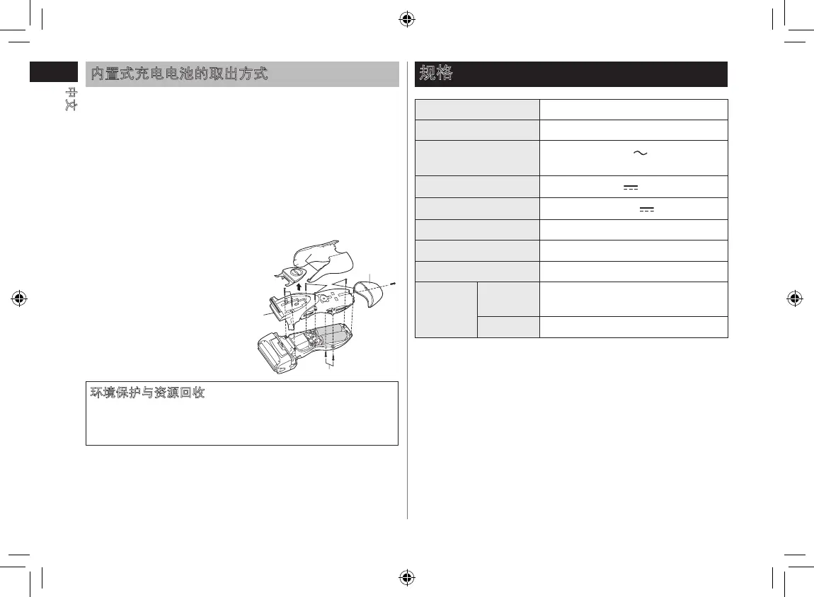 Panasonic ES-RL21 - Removing Built-in Rechargeable Batteries; Environmental Protection and Recycling; Specifications