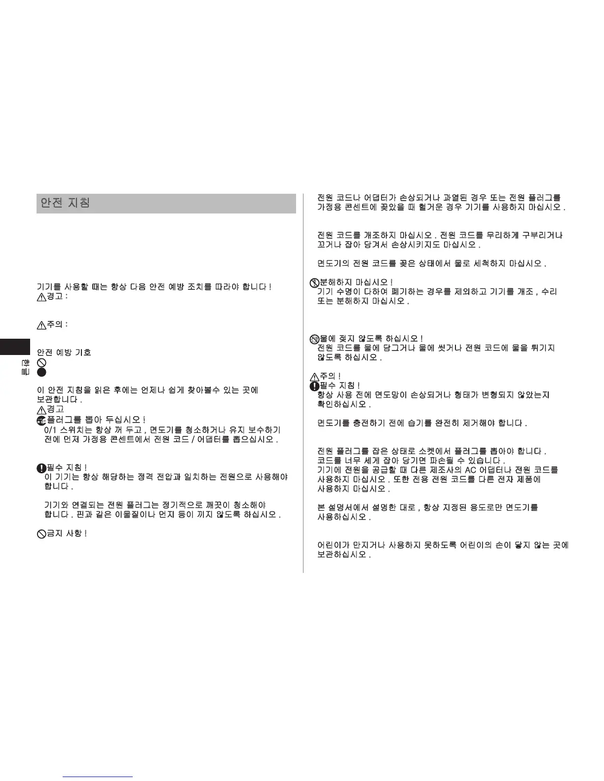 이를 지키지 않으면 감전되거나 단락 또는 화재가 발생할 수