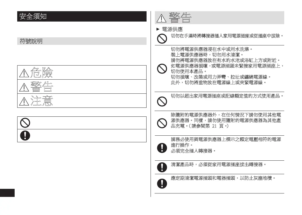 若不理會此等符號,不當使用本產品就可能會導致所述的危險、